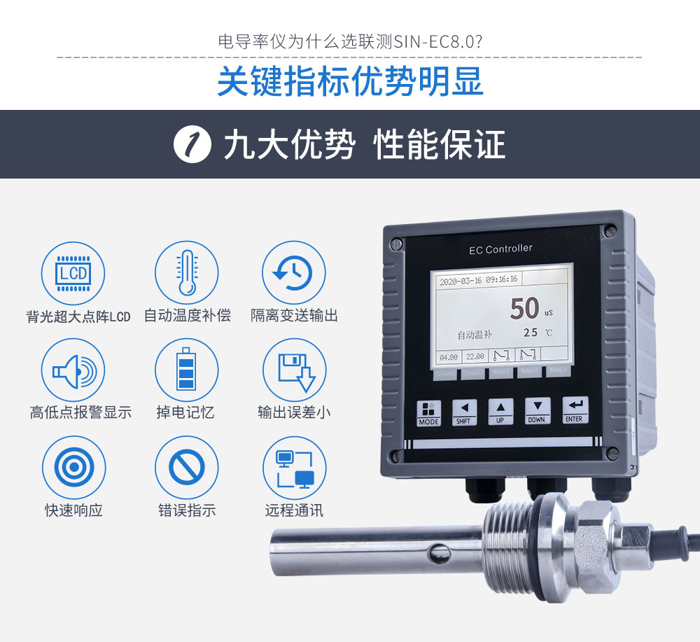 當前位置:首頁 > 電導率儀  >  聯測_SIN-EC8.0在線電導率儀_RO過程_水處理_CIP清洗_海水淡化