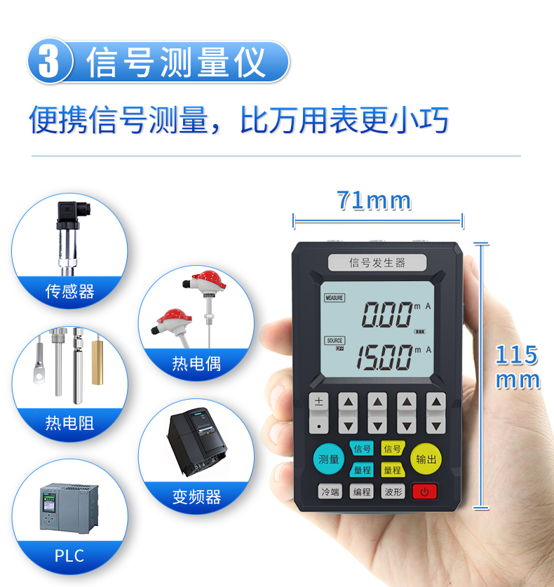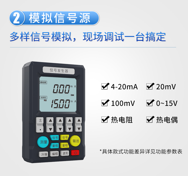 簡要描述:本信號(hào)發(fā)生器具有多種信號(hào)的測量和輸出功能,包括電壓、電流、熱電偶信號(hào),采用高清LCD液晶屏和功能分明的硅膠按鍵,顯示清晰,操作簡單,且具有待機(jī)時(shí)間長,精度高和可編程輸出功能。